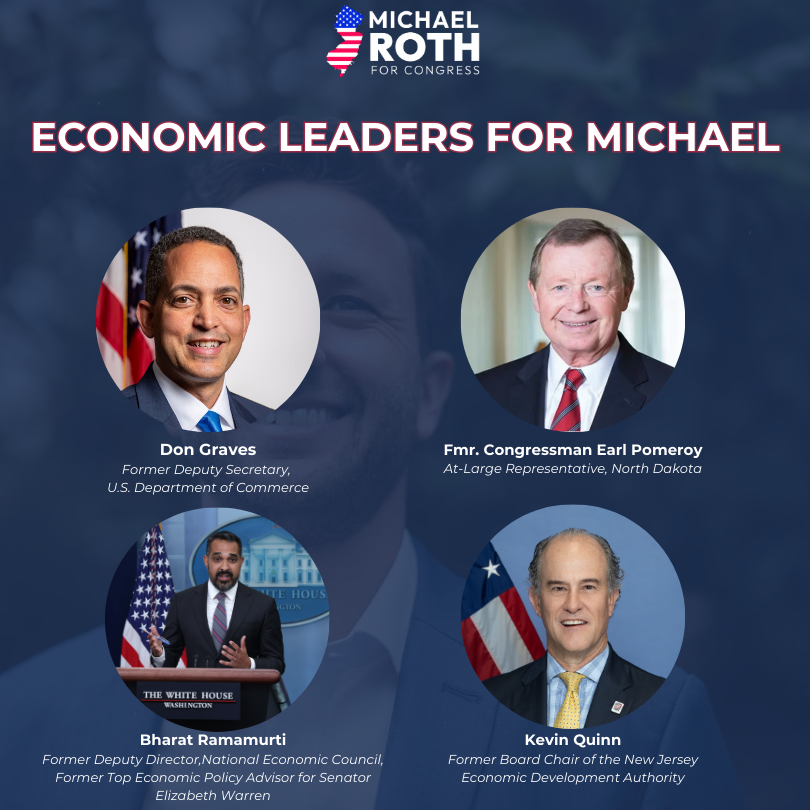 Michael Roth for Congress Launches Economic Leaders for Michael with Endorsements from Senior White House, Congressional, Commerce Department, and New Jersey Economic Leaders